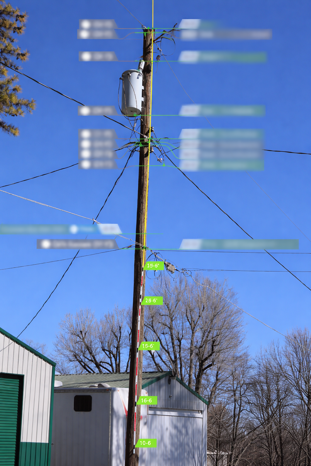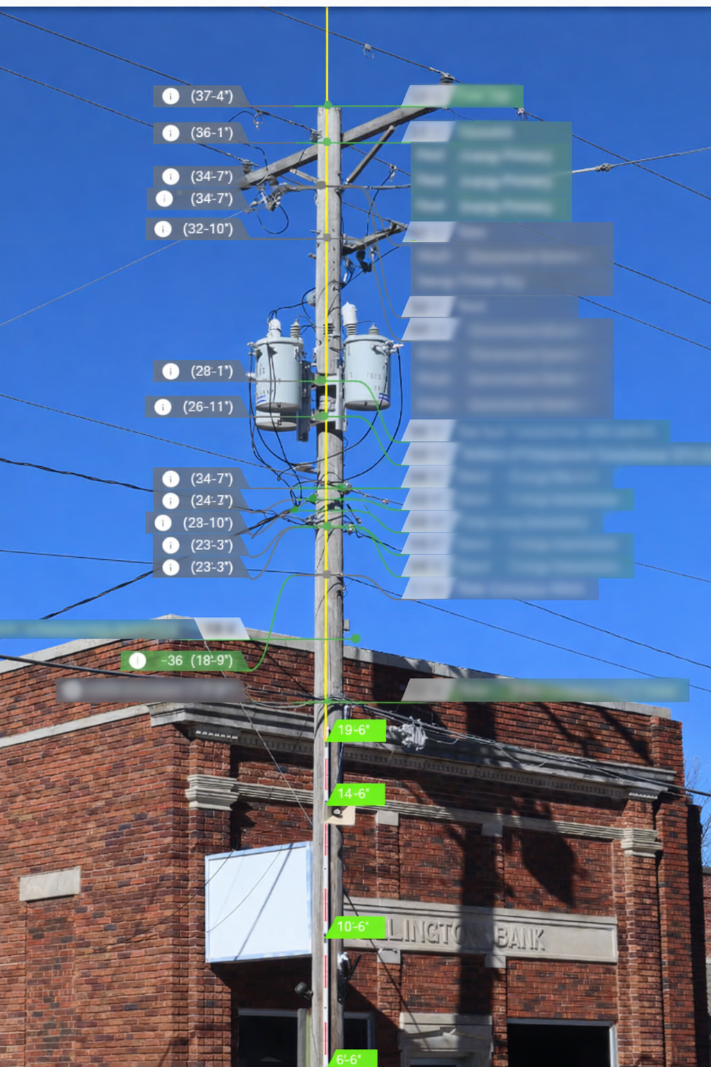 Our team carefully annotates all existing attachments and equipment on each pole, ensuring accurate documentation of current conditions before any modifications are proposed.